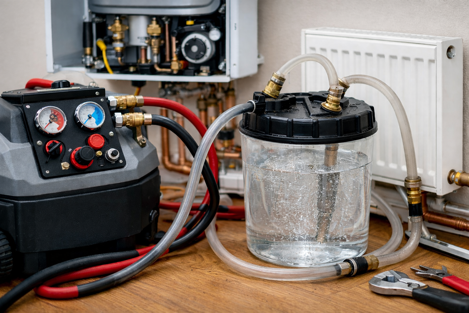 A power flush is a deep clean of your central heating system. It removes built-up sludge, rust and debris from your radiators, pipes and boiler to help your heating run more efficiently.